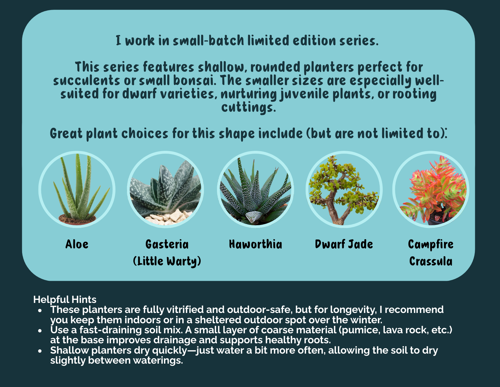 • Limited-edition, handcrafted ceramic pots — each subtly unique.