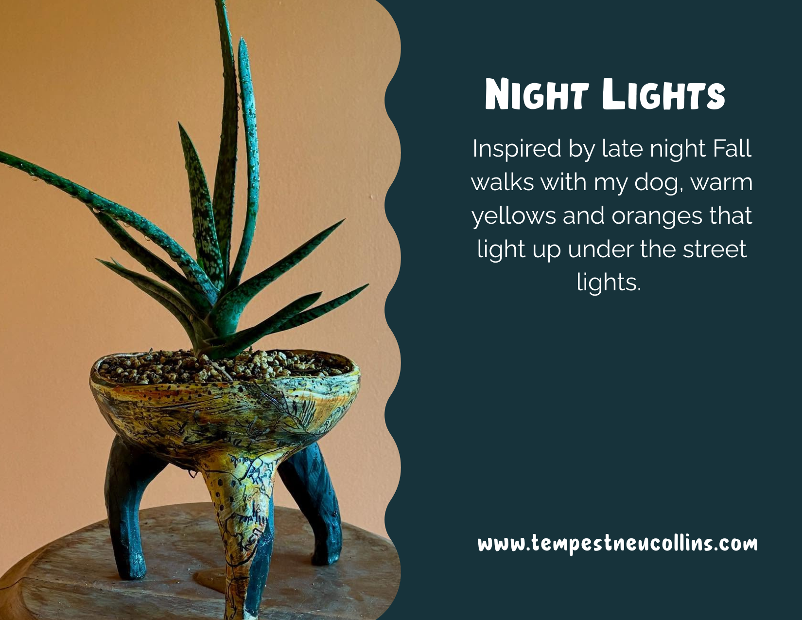 The Night Lights Series is a collection of ceramics inspired by late-night fall walks under warm streetlights — capturing autumn’s glow through rich yellows, oranges, and nuanced surface marks.